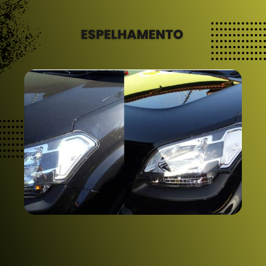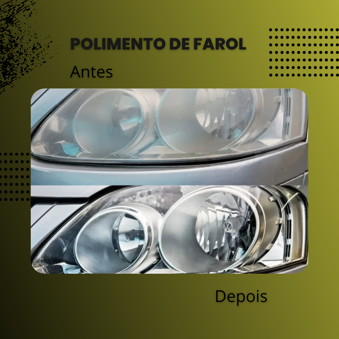 É um processo de limpeza, lixamento e polimento profundo + aplicação de vitrificação de faróis para maior durabilidade.